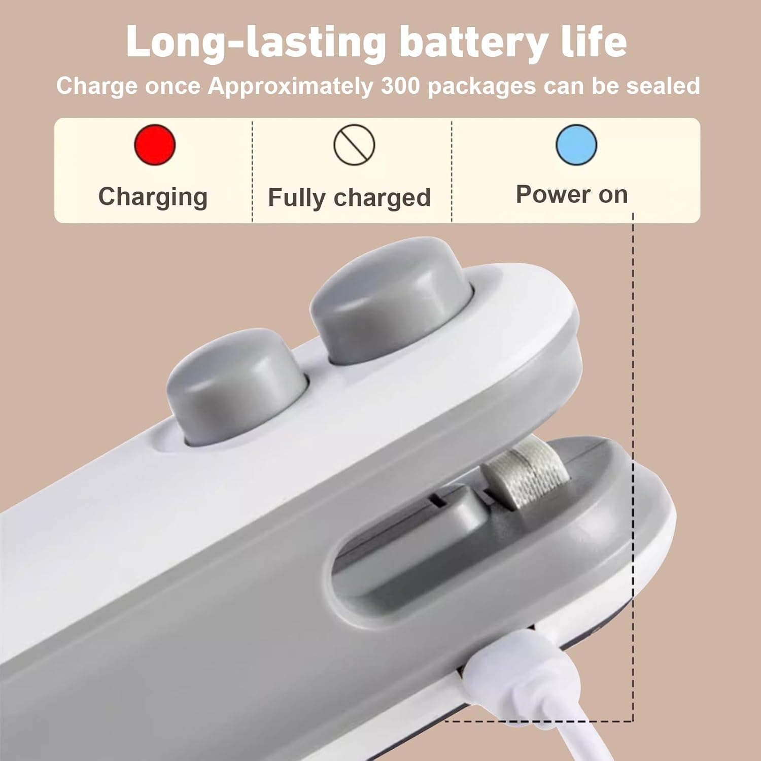 The Mini Bag Sealer takes about 2-3 hours to fully charge using the included USB-C cable. Once fully charged, you can seal up to 300 bags before needing to recharge. It’s perfect for everyday use or for occasional sealing tasks. 🔋